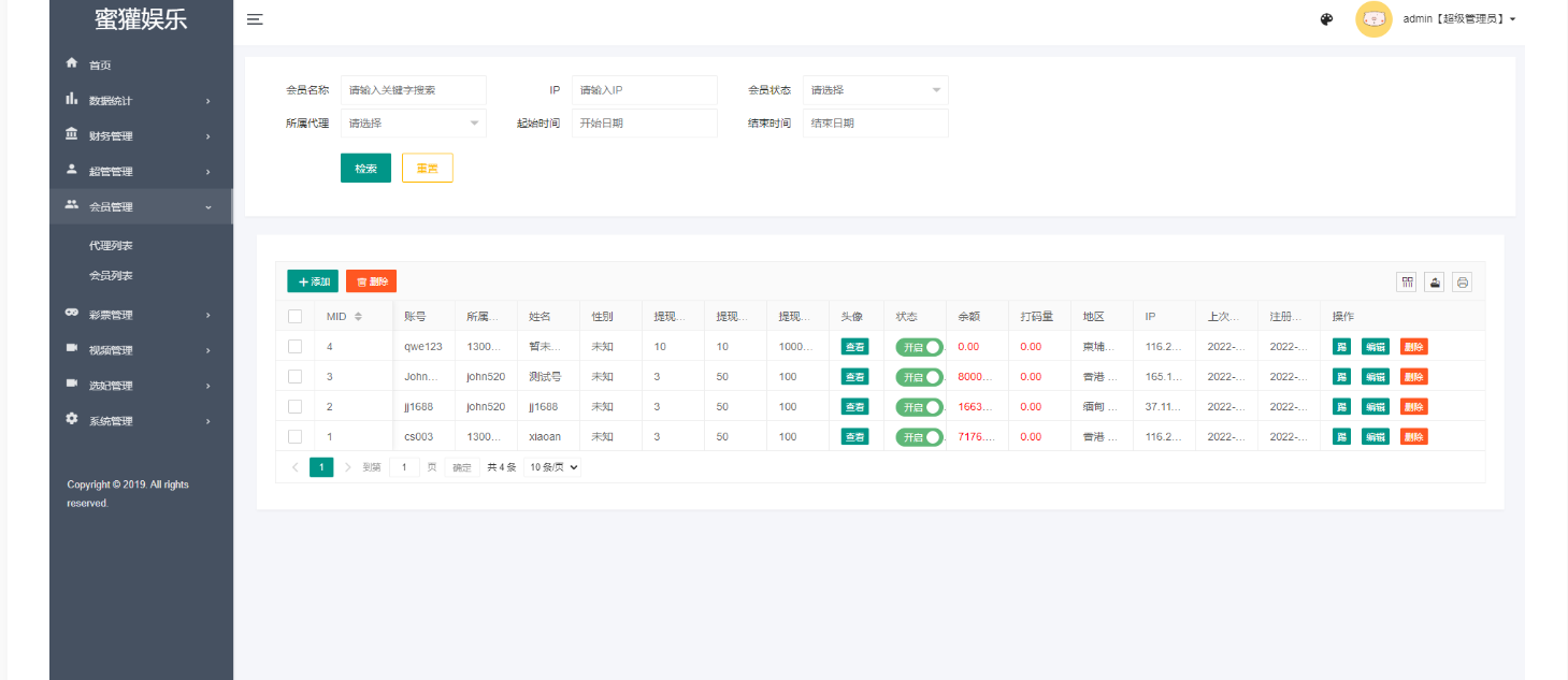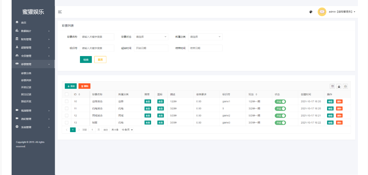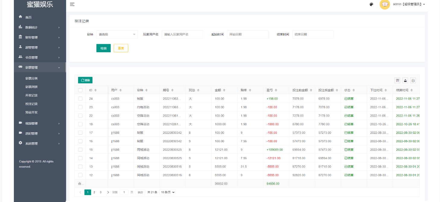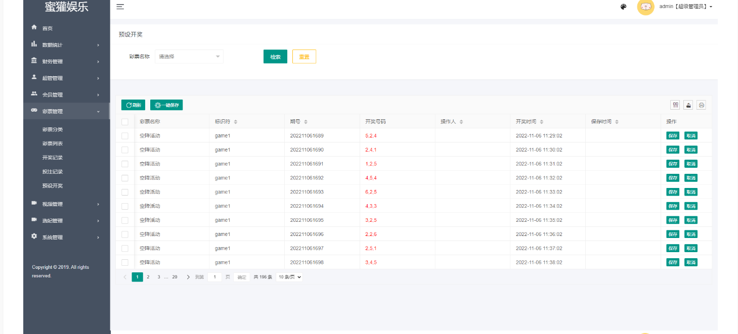 所有彩种都是快三系统彩,后台可控制开奖结果,可以提前预设开奖内容,带开奖脚本。
